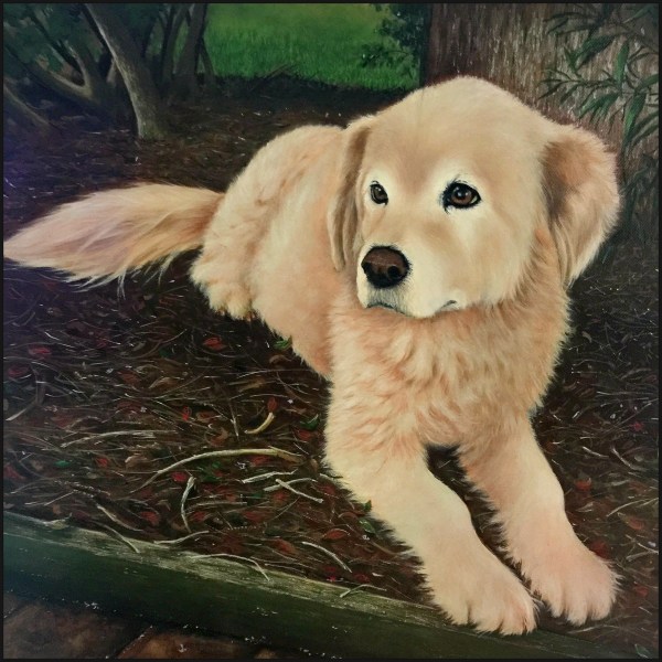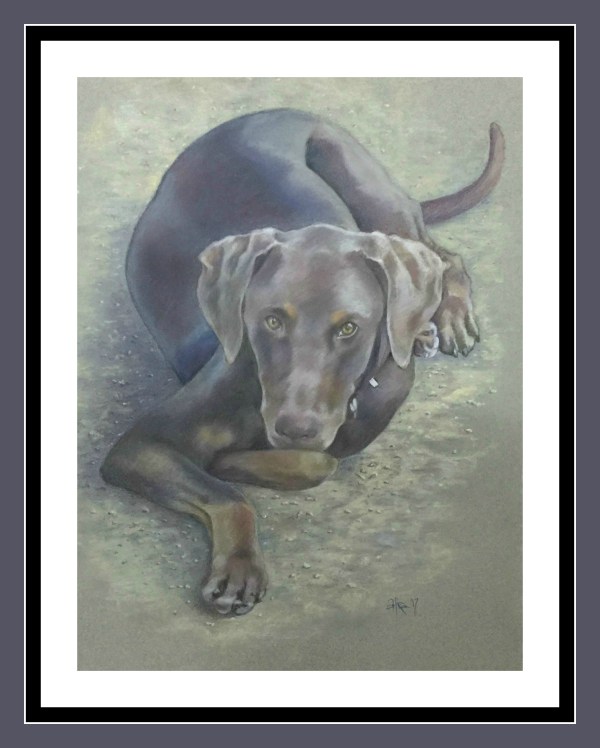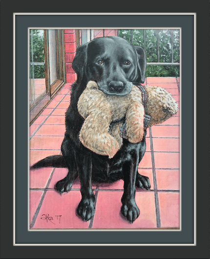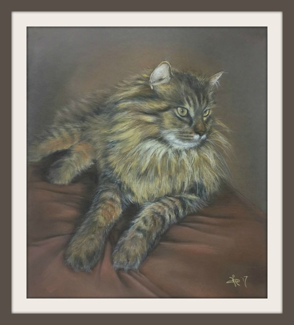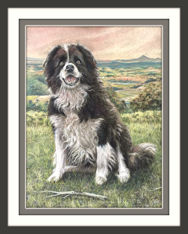 I’ve done a number of studies of Bear because he’s so black and detail is so hard to capture – I keep looking for that magic formula. His bright yellow eyes glowing out of his round chubby face are the only way I can tell front from back at a distance and even close up sometimes. But in the sunlight – what first seems like an amorphous mass of black fur is in fact a rich mahogany undercoat with platinum highlights defining his proud shape with a rich depth of colour.