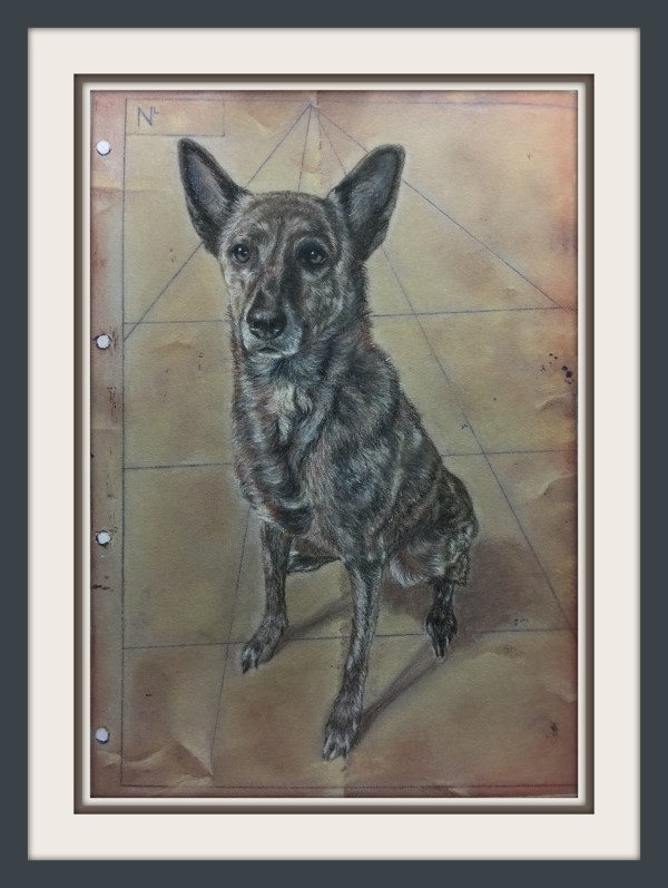 We all felt terribly ripped off as she was such a joy and I offered to paint a portrait of her for the owner.   She sent me two photos by email.   One of the regal Cody resting on the lawn and the other of her eldest son Jay (Cody’s best friend) embracing her.